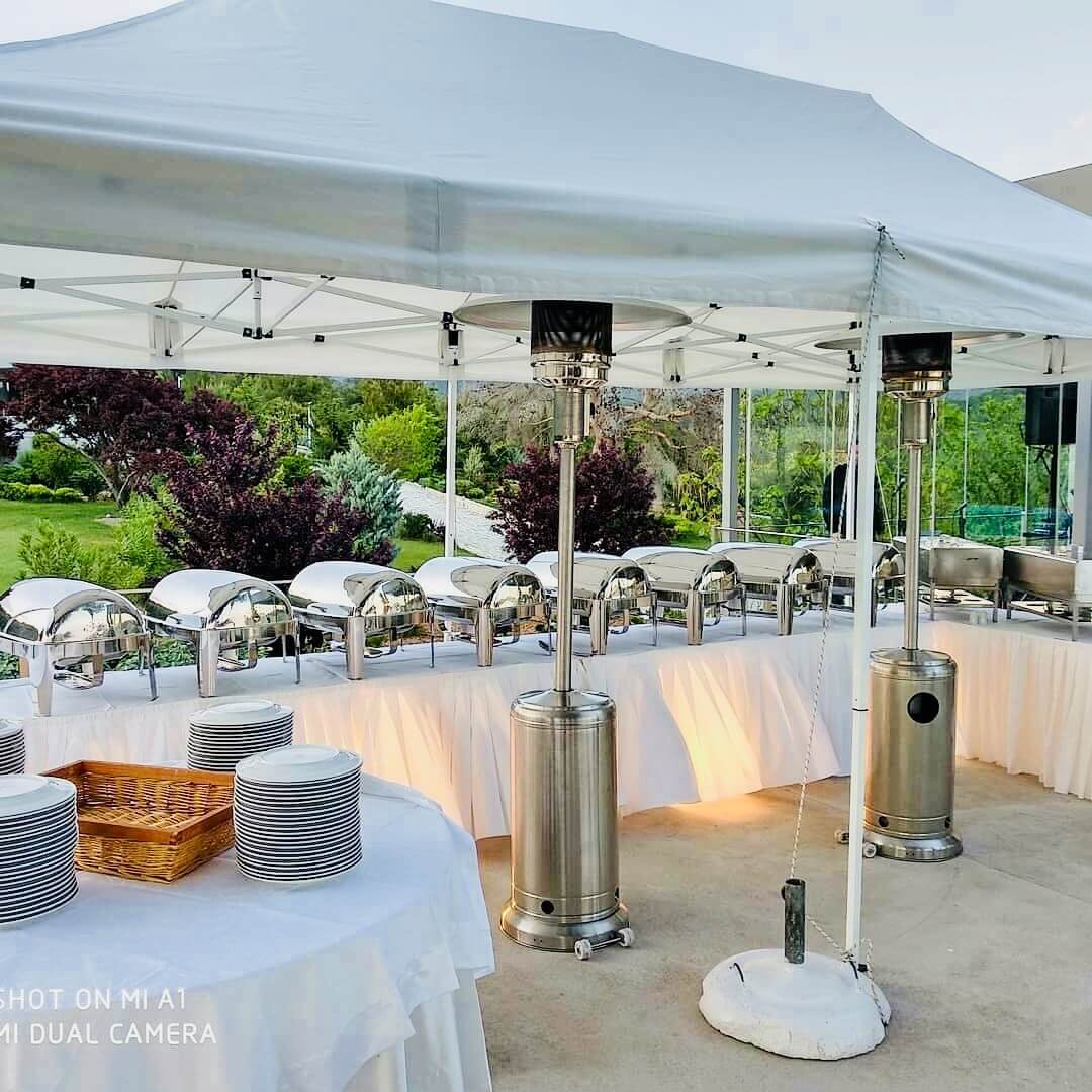 Εσωτερικά μπορούμε να τοποθετήσουμε φωτισμό περιμετρικά των στεγάστρων με προβολείς LED 100 W/τμ. Επίσης, στην οροφή εσωτερικά τοποθετείται επένδυση πλισέ σε σαμπανί χρώμα, για καλύτερη αισθητική. Πλαϊνή κάλυψη με διαφανή και τυφλά πλαϊνά, ανάλογα με την επιλογή σας.