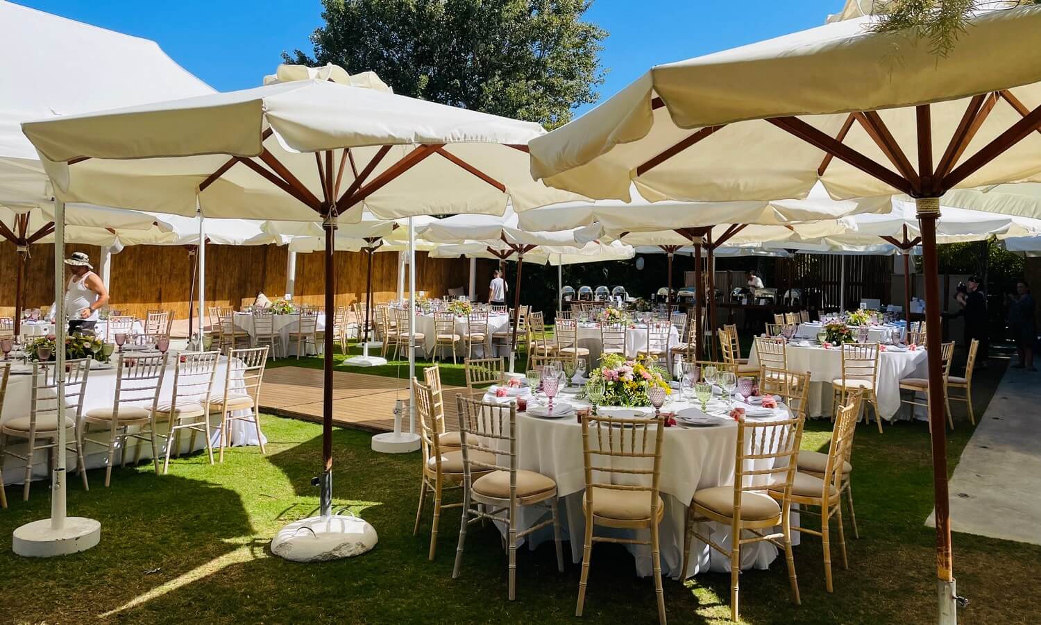Θα χρειαστείτε ομπρέλες για να αποφύγουν τον ήλιο οι καλεσμένοι σας; Κανένα πρόβλημα! Η Γιώργος Spring μπορεί να σας προμηθεύσει με όσες ομπρέλες χρειαστείτε, πάντα σε άριστη κατάσταση και στις οικονομικότερες τιμές.